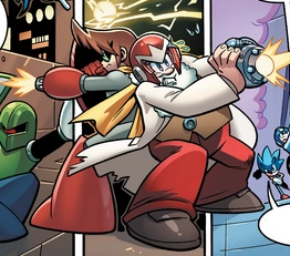Da Proto Man im Kampf gegen die robotisierten Mobianer keine Chance hatten, griff Mega Man ein, rettete ihn und brachte ihn zurück ins Labor von Dr. Light, wobei Mega Man selbst es mit den Roboticized Masters aufnehmen wollte (SU: 51).