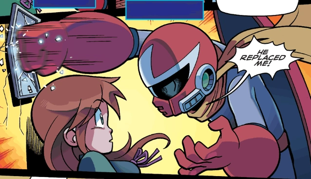 Da sie wie er eine ähnliche Vergangenheit hinter sich hatte, fragte er sie, weshalb sie noch LaLinde vertrauen würde, nachdem diese Tempos Persönlichkeitschip entfernt hatte oder sie auch daran schuld war, Dr. Lights Meinung so zu drehen, dass er beschloss, Proto Mans Energiekern zu restaurieren und das Risiko aufsich zu nehmen, dass Blues Persönlichkeit sich löschen würde.