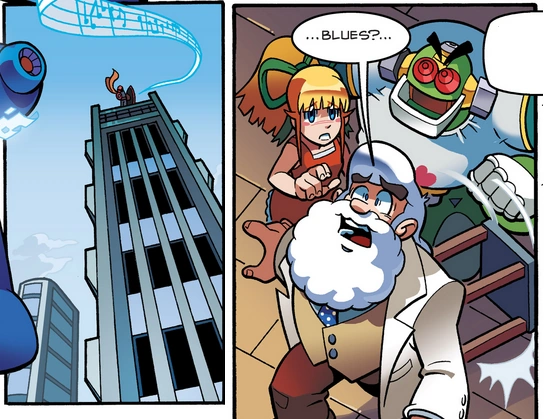 Als später Dr. Light von Bass und Metal Sonic entführt wurden, konnte Blues nichts gegen die zwei Gegner unternehmen, welche in einem Warp Ring in die Skull Egg Zone verschwanden. Zusammen mit Mega Man, Sonic the Hedgehog, Miles "Tails" Prower und Rush machte er sich auf den Weg in die Zwischenzone der Welten, ließ die vier jedoch allein und suchte allein nach Dr. Light weiter.