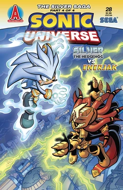 - In the preview cover, the subtitle 'Silver the Hedgehog vs. Enerjak" is not present.