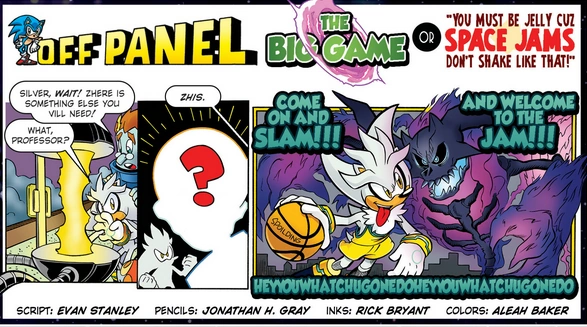 - The lines in the final panel of the Off-Panel strip are lifted from the main theme of the 1996 basketball-themed movie, Space Jam.