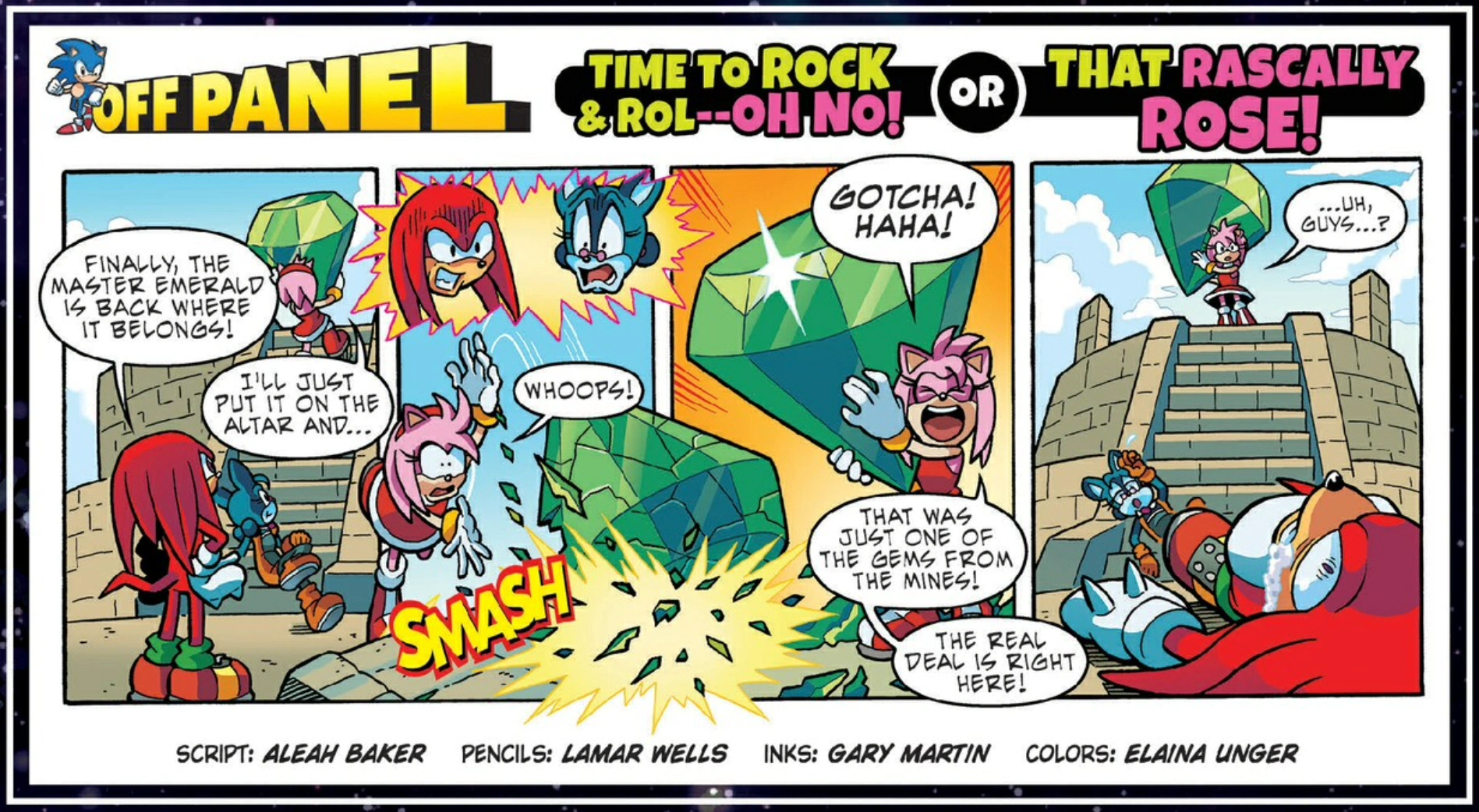 Knuckles, Amy, and Relic are at the Shrine Isle to return the Master Emerald to where it belongs. To Knuckles and Relic's horror, Amy trips and drops the Master Emerald, shattering it again. However, Amy reveals that it was only a gem from the mine and the real Master Emerald is safe and sound. However, Amy soon realizes that Knuckles is frothing at the mouth and Relic has fainted.