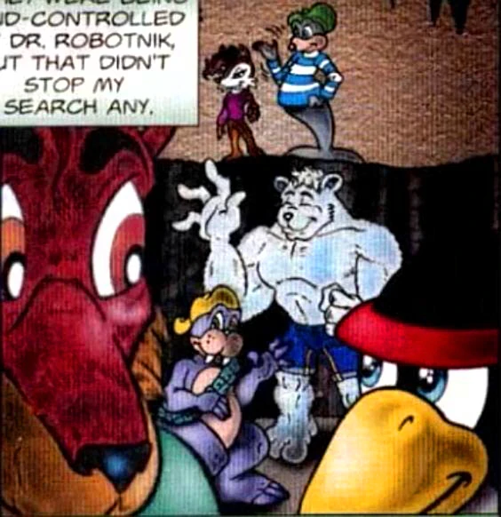 For a time, the group disbanded due to a conflict of approaches-while Guntiver, who had brought the group together, and Sealia wished to retain their peaceful efforts, Erma wished for the group to take a more aggressive approach. Weeks after Robotnik's death, though, they informed Rotor that the hypnosis appeared to have worn off. Rotor had to see for himself, and was at peace with his family and the Herd until the hypnosis mysteriously started up again. The Arctic Freedom Fighters saved Rotor from his totaled submarine, as well as broke the bad news that Rotor had already figured out; Robotnik had returned, this time in the form of his alternate universe counterpart Robo Robotnik. As a result of this development, the group decided to reunite as a band of Freedom Fighters. They later participated in the battle against the Xorda, along with virtually every other Freedom Fighter group on Mobius. (StH: #85, #125, CSE)