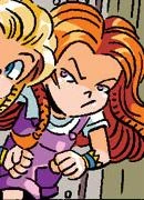 Eventually, though, Lupe and the other Robians had their free will restored, and were reunited with the Wolf Pack, making Athena and Aerial very happy to have her back in their lives. The Pack then left Knothole and resumed traveling. While in the woods, they suddenly found themselves in the path of A.D.A.M.'s spreading Nanites; too small to run quickly enough, Athena was carried by Lobo. They eventually made their way to safety and resumed their journey. (StH: #112, #152)