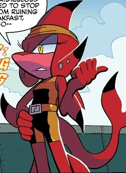 Sometime ago, Blade and her brother Razor once tried to steal pirate treasure from the Knives but were caught by Captain Shellbreaker and his rough-crowded crew. The pirates decided to let the pair join their ranks, though they were unfortunately betrayed by Abyss the Squid, who had joined the Eggman Empire to form her own pirate crew. Later, a "philosophical disagreement" between Razor and his crewmates saw the former being cast into the sea, and separated from his sister. (SU: 92; SSD: #15)