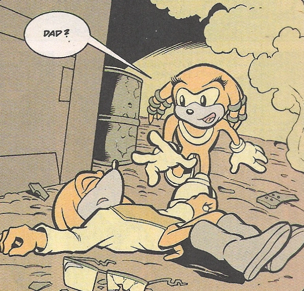 When Chaos Knuckles was attempting to change history and bring an end to the gap between the Dark Legion and the rest of Echidnaopolis, one of the points in time he went back to was just before Edmund was shot. He prevented the shooters from killing Edmund, but this in turn prevented the Guardians from existing in the future, resulting in Dr. Ivo Robotnik roboticizing all of the Echidnas. Chaos Knuckles undid the change before he turned into a Robian. (StH: #102)