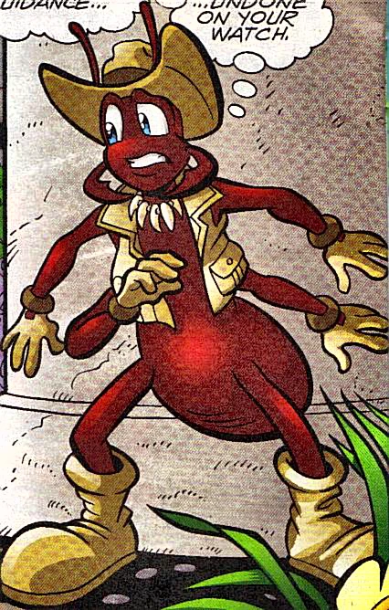 Though they formed a society early on in Mobius' history, the Fire Ants were long content to mind their own business, and let the rest of the races of Mobius mind theirs. However, they were not entirely blind to outside affairs, observing the crimes of certain Albion scientists against the Tasmanian Devils during the Forgotten War. As a result, when another party of Echidnas arrived, the Fire Ants took it upon themselves to help direct and protect them from outside threats, albeit in secret. The first noted impact on history the Fire Ants would have was their assistance in the formation of Angel Island, which rose from their homeland of Downunda. Having previously been in contact with the citizens of Echidnaopolis, they readily agreed to help the two scientists Kayla-La and Jordann with their plan to save the city from the White Comet that was headed on a collision course. While the Echidnas gathered twelve Chaos Emeralds, the Fire ants used their tunneling ability to loosen the dirt under the area. Just before the comet struck, the new island rose to the sky via the power of the Chaos Force, bringing the Echidnas, Dingoes, and Fire Ants with it. The Fire Ant monarchy, which had formed previously, was entirely contained within the island. (StH: #34, KMS: #2, CSE)