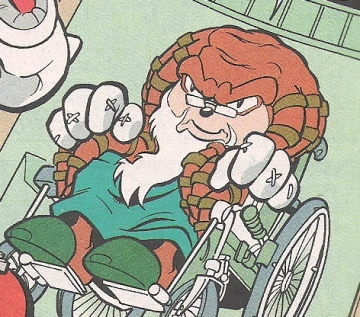 Hundreds of years later, Hawking, who was now the second-oldest member of the Brotherhood alive (at the time of Knuckles's birth), had retreated to his inner sanctum beneath Echidnaopolis. Extremely old—his body debilitated by his advanced age—he was confined to a wheelchair. As a result of being underestimated by his brethren, Hawking had become cantankerous and stubborn. (KtE: #5)