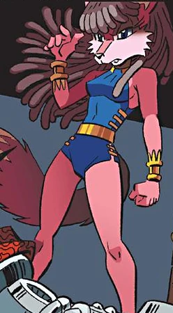 Like many of the wolves, Lyco and her sister Leeta were separated from their people during the First Robotnik War, but in its aftermath the two found and joined up with Lupe and her Wolf Pack Freedom Fighters. Thus they were with the group when it began the journey home. With the others, they crossed a raging river and took shelter in an abandoned city for several days while a severe storm passed. There, the pack took in two Overlander children before continuing on. When the pack finally found their city, they found it in ruin and seemingly abandoned, though Lyco hated to think the situation was as hopeless as it seemed. The entire group soon fell victim to a gas attack. Knocked unconscious, they awoke as prisoners of the roboticized Sir Charles Hedgehog, who in turn forced Lupe to submit to roboticization. However, the Robian Lupe retained enough free will to allow the rest of the pack a chance to escape. (StH: #67, #68, #69, (SSS: #11)