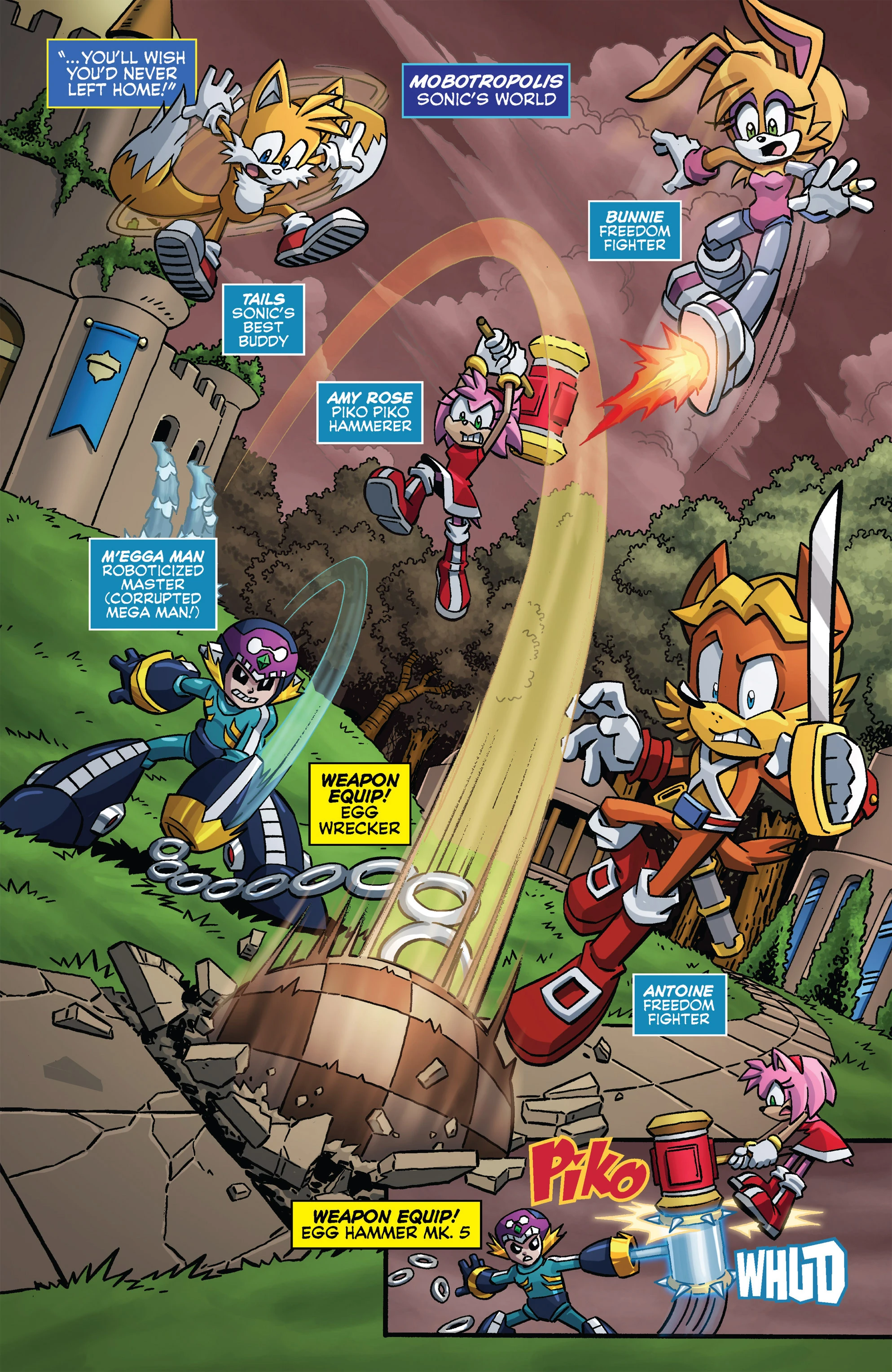 - Mega Man was once reprogrammed before during the Return of Dr. Wily arc in Archie Mega Man but here, it appears to be an Eggman reprogramming, considering that Mega Man's appearance is altered to look more like an Eggman minion. Flash Man acknowledged this in Mega Man #50.