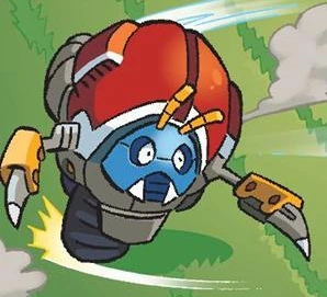A Motobug briefly teamed up with a Mettaur when Eggman and Wily made a bet to see which robot would take down Dr. Light first. However, both robots had walked into each other, and thus began to fight each other instead. The robots would eventually destroy each other, and Dr. Light made a transmitter from their parts. (StH: #250)