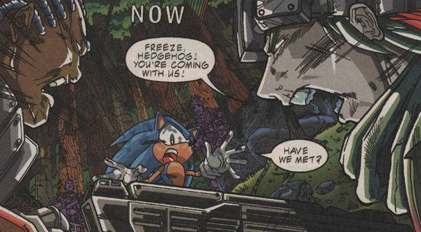 Rico was part of one of the first missions given to Paladin Team Sigma-Alpha 2; the capture of Sonic the Hedgehog, when they believed he was responsible for stealing the city's Chaos Emerald. They ambushed him on his return to Knothole, and despite him managing to snatch their weapons, managed to capture him. Things went well until Sonic spotted a loose screw on the helicopter he was being transported in and jumped out after taking out everyone aboard. (StH: #98)