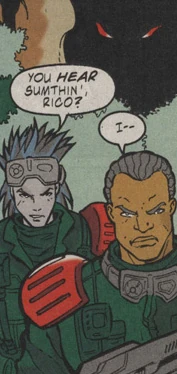 During the Xorda's attack on the planet, Rico and Sigma-Alpha 2 were among the G.U.N. soldiers on the field of battle against the Quantum Dial, working under Commander Hugo Brass. (StH: #125)
