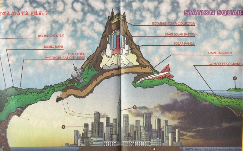 Station Square, known as The Hidden City of the Ancients to outsiders, is a city-state of the United Federation, and was thought to have been the last populated human city on Mobius. It is located on the continent of Soumerca, near the Mystic Ruins and the Mysterious Cat Country. Station Square's technological levels are on par with Dr. Eggman's, making it as much a target as Knothole or New Mobotropolis. It originally featured an artificial environment which came to be powered by two Super Emeralds. However, following the Chaos incident and the Xorda attack the city has been exposed to the outside world and forced to find alternative sources of power.