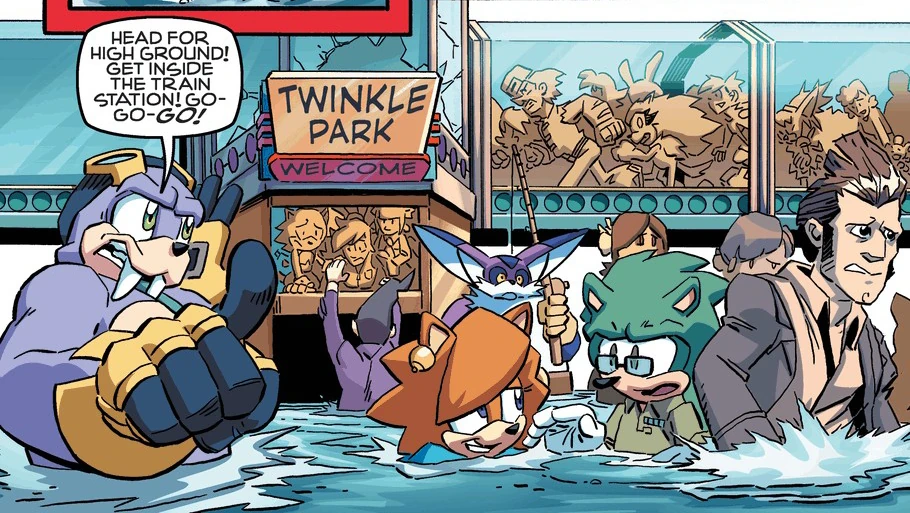 When the city was heavily hit by The Shattered World Crisis, several unlucky visitors to the park became trapped inside by the floods, before being rescued by the Knothole Freedom Fighters. (StH: #257)