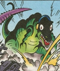 Vector-Zilla is an alternate version of Vector the Crocodile from an alternate version of Mobius. In this universe, Chaos Emerald radiation transformed Vector into a hideous, gigantic monster that threatened the people of Mayor Kintobor's city. Vector-Zilla was not seen fighting Sonic with the others. (SSS: #12)